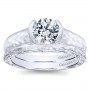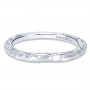 This band is made to match the 14K White Gold Diamond Solitaire engagement ring ER9058W44JJ. The wedding band features a hammered finish with scroll work and milgrain details on the sides. Made for DIAMONNA by our friends at Gabriel & Co. New York.
