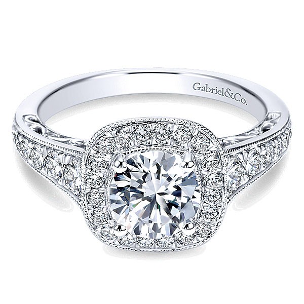 Gabriel & Co. 14k White Gold Diamond Halo Ring and Channel Milgrain ER7293W44JJ