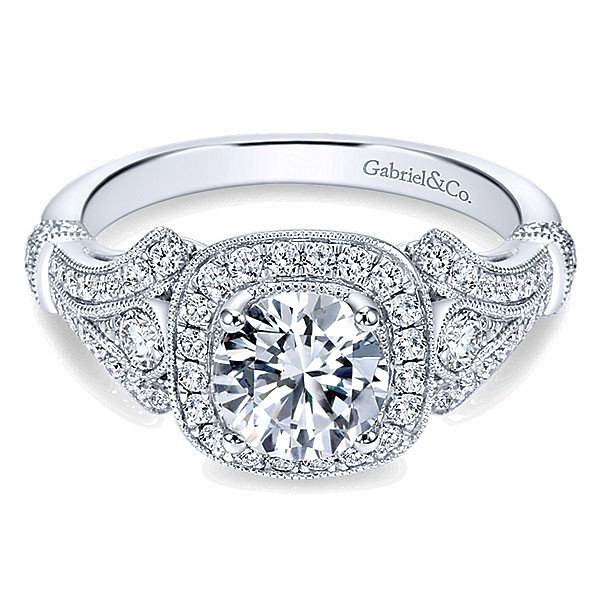 Gabriel & Co. 14k White Gold Diamond Halo Ring and Filgree Setting ER7479W44JJ