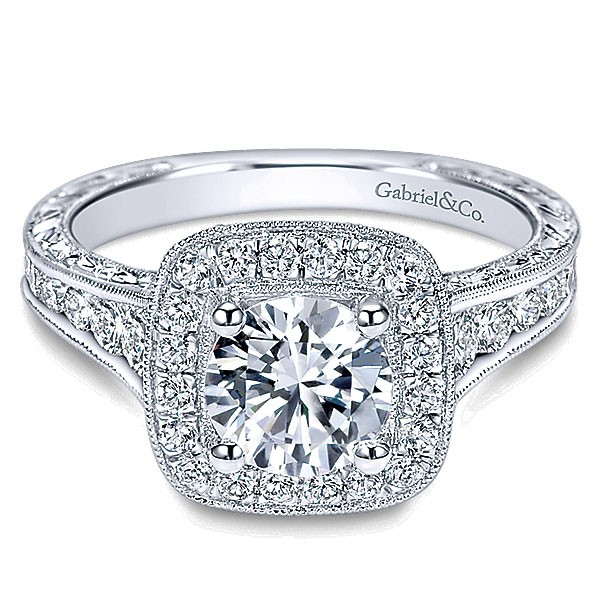 Gabriel & Co. 14k White Gold Diamond Halo Ring Channel and Milgrain ER8794W44JJ
