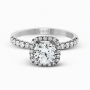 This gorgeous engagement ring is one of our best sellers! No detail was spared when designing this masterpiece. This ring features luxurious 18 karat gold and a halo with accent diamonds that are ethically sourced, non-conflict, fine diamonds. Made by the fabulous Simon G; designer of some of the finest jewelry in the world! CENTER STONE NOT INCLUDED. Add a round gem to your order and we will assemble it completely for no added fee.